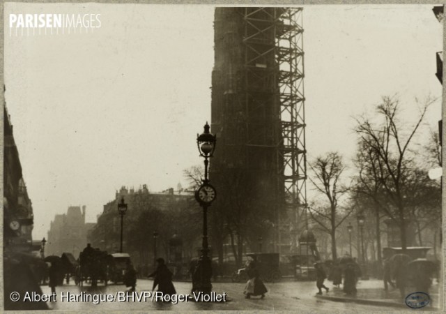 Seine flood. Rue de Rivoli near the Saint-Jacques Tower. Stopped pneumatic clock. Paris, 1910. Photograph by Albert Harlingue (1879-1963). Bibliothèque historique de la Ville de Paris.