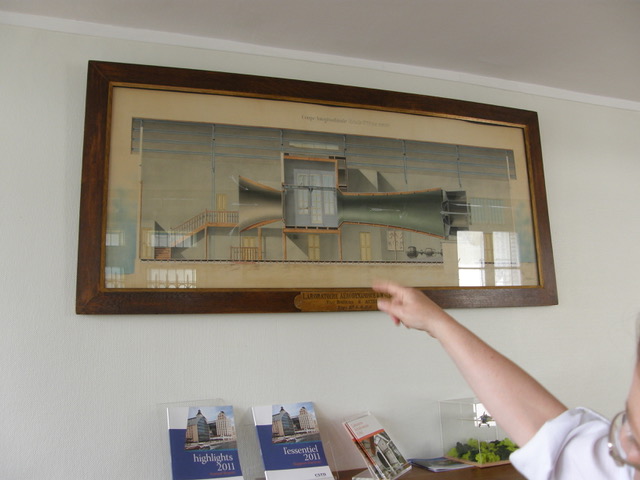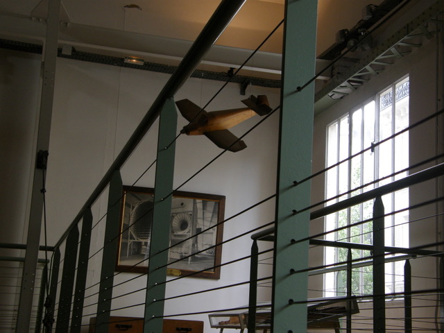 I was starting to feel harried myself, and later I realized that several of the photos I took in haste were out of focus. But as I snapped away, I caught sight of the big central room with the wind tunnel. I pointed. Could we just take a quick look? Just for a moment?
