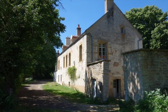In May 2019, Noëlle met us at the station in Avallon and drove us to La Cure. This is the side on the lane – the main entrance to the house is through the garden on the other side. There is also a side entrance into the courtyard, just visible on the right.