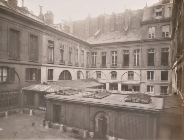Entresols feature in quite a few of Lansiaux’s many Paris photos. Here is one of the courtyard behind 8, rue Royale.