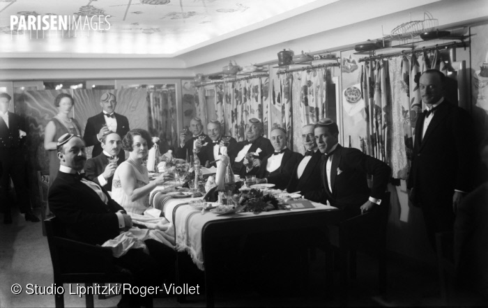 Fashion designer Paul Poiret is less well known today than his rival Coco Chanel. However, Poiret was famous for the hobble skirt and harem pants (one hobbled women, the other freed them). At the International Exposition of Modern Industrial and Decorative Arts in Paris in 1925, an invitation to dance on Poiret’s péniche Orgues must have been a prize reserved for the wealthiest or most well-connected. Surely no péniche had a more distinguished, or shall we say, theatrical ceiling. It was not Poiret’s only péniche. There were also Amours and Delights, for example.