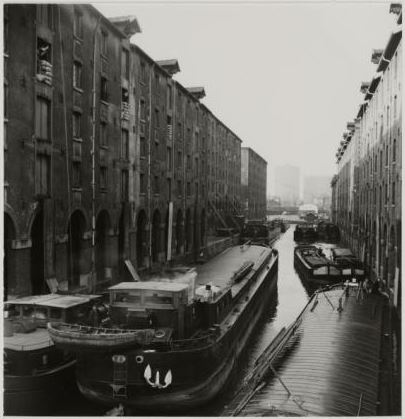 This 1936 photo of péniches flanked by large warehouses at the Bassin de la Villette reminds one of the closeness of parked cars in Paris. The two most prominent péniches in the photo show the movable metal panels that protected cargo that was either sensitive to exposure to the elements or was likely to be stolen.