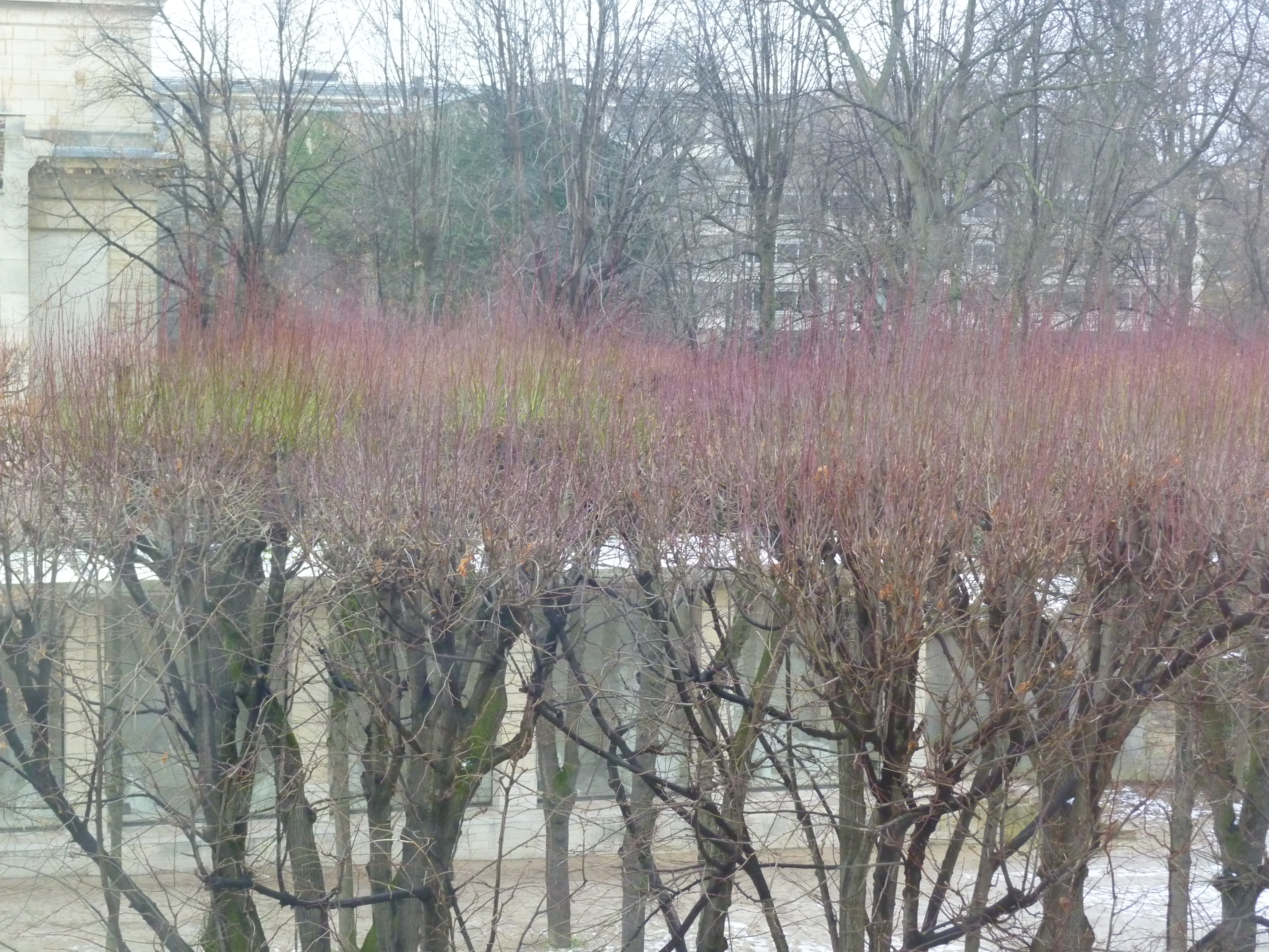 Then there is pollarding, a very French fashion, whereby branches are cut back severely so that they become stubs from which new growth bursts out. Pollarding is done at regular intervals (about every five years) to keep the tree at a certain height. These ones were photographed in winter in the garden of the Observatoire.