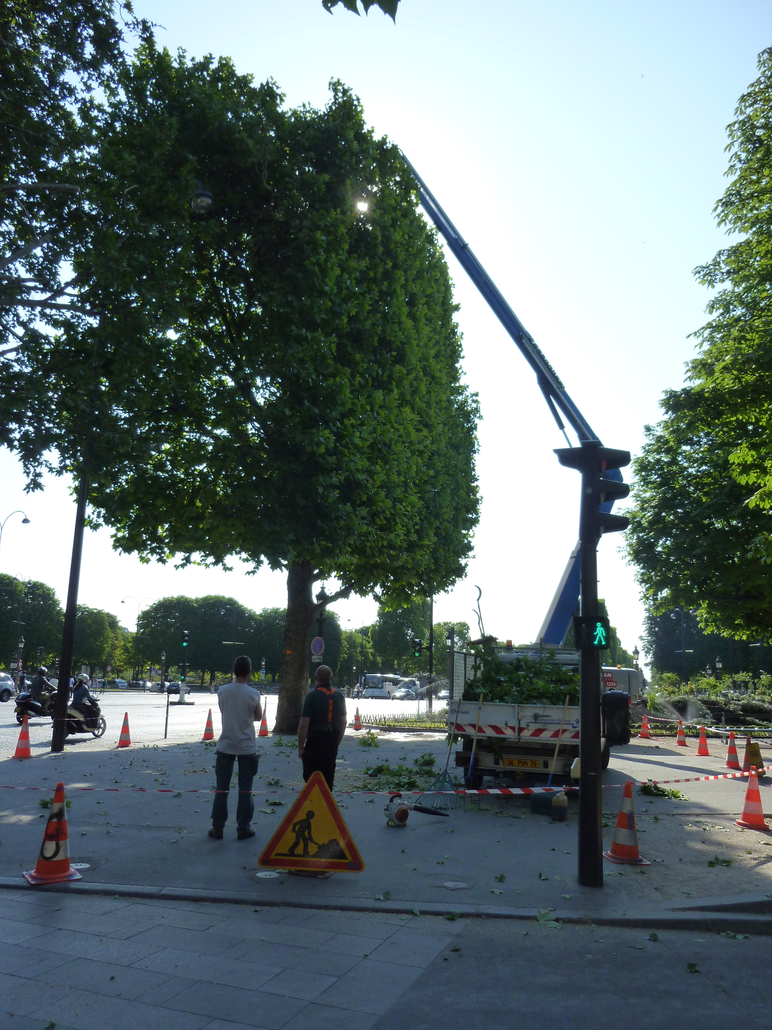 Many are pruned to within an inch of their lives, maintaining rectangular canopies that remain within fixed limits. The trees on the Champs-Elysees are subjected to this treatment. It takes serious machinery to keep them in line.