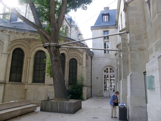 And when trees get droopy, they are propped up with wooden beams or, in the case of the tree in the courtyard of the Musée des Arts et Métiers, held with a metal ring that is attached to the side of a building.