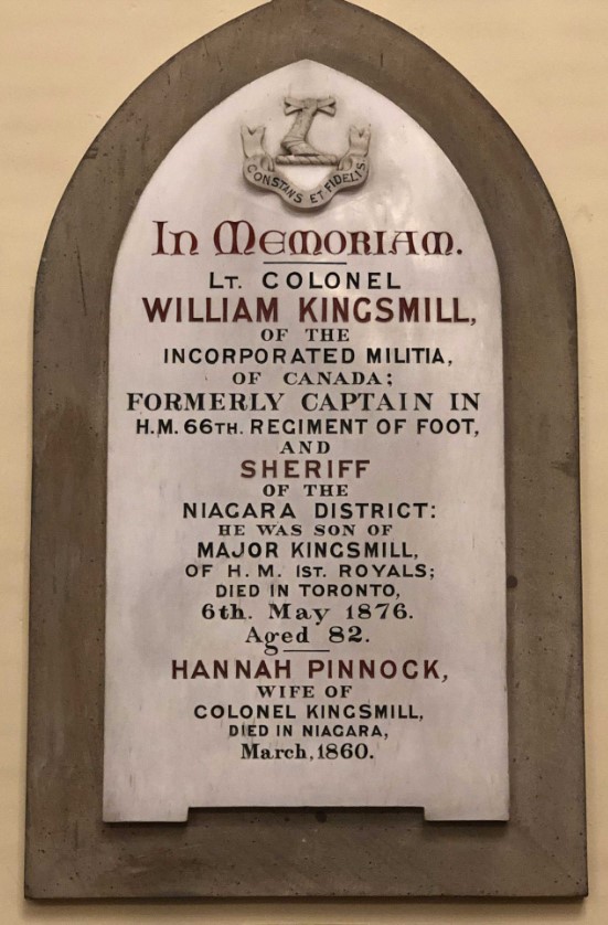 Hannah died in Niagara-on-the-Lake in 1860, William died 16 years later in Toronto, at the home of his son Nicol. His body was taken by steamer back to Niagara-on-Lake for burial beside Hannah (not quite as grand as Le Retour de Cendres, but a solemn boat trip nonetheless). A plaque hangs in St. Mark’s Church in Niagara-on-the-Lake.