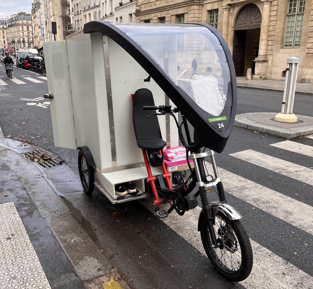 We were impressed with some of the changes over the last few years designed to reduce car traffic. Pedestrianized streets. Other streets limited to commercial traffic only (buses, taxis, delivery vehicles). Bike lanes – okay, the bicyclists themselves are casual about obeying traffic signals, but I appreciate the infrastructure. Pedal-powered/electric delivery vehicles of all kinds.