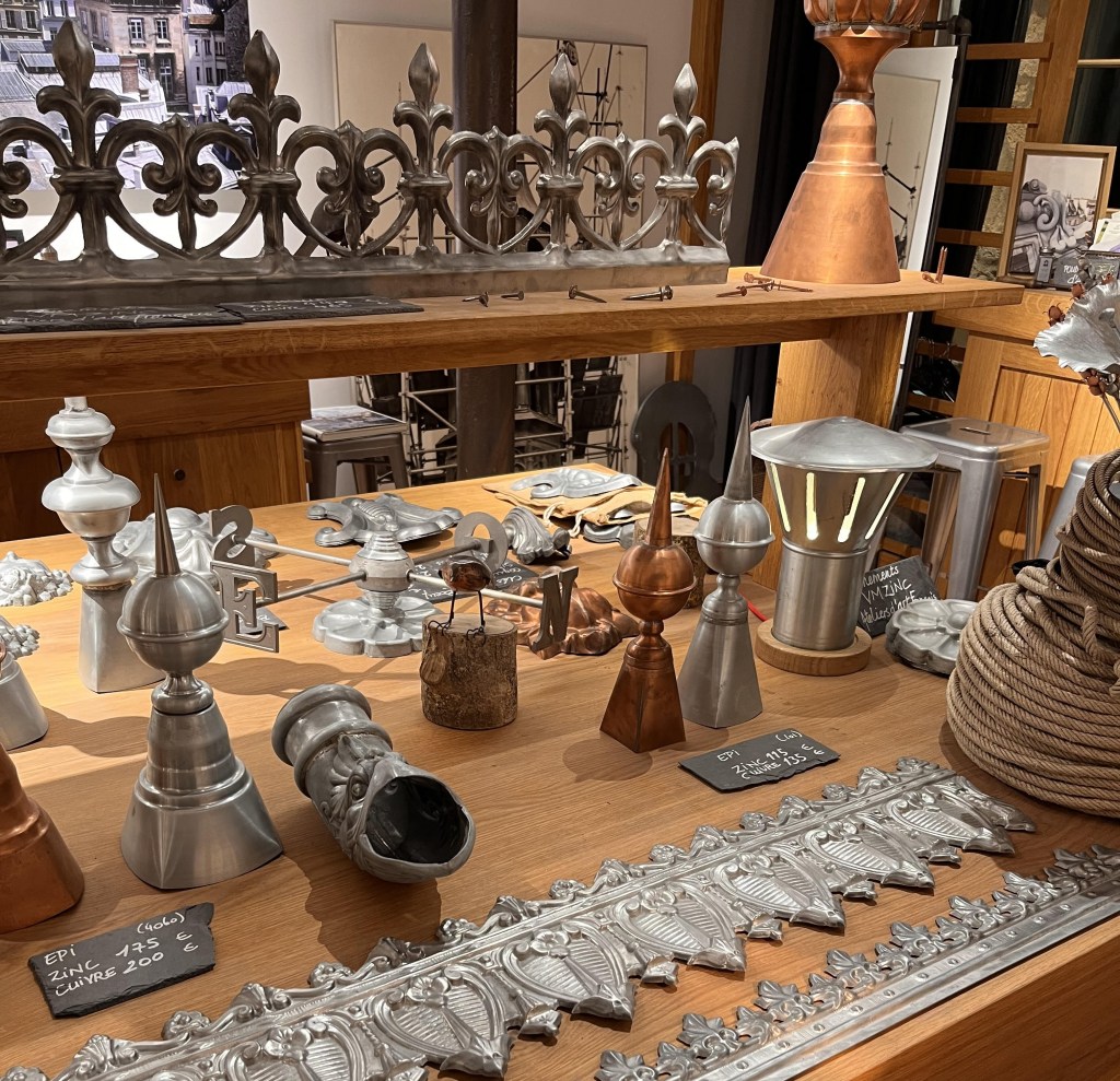 We even found a shop called Les Toits Parisiens near the Village St-Paul, in which you can learn how to create artworks using zinc or ardoise (slate), the traditional materials of Paris roofs. We bought an original picture, a zinc objet, and some delicious little bonbons the colour of slate. We spent hours talking to the owner and examining everything in the small space.