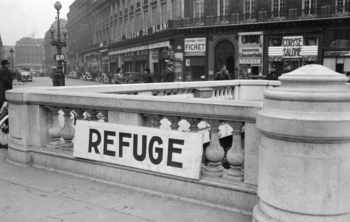 Text and photographs of church interior by Philippa Campsie; photographs of Pyrenees and Opera (refuge) stations: https://www.paris.fr/pages/paris-sous-terre-ces-refuges-oublies-de-la-seconde-guerre-mondiale-8124; plaque: https://openplaques.org/plaques/39943; all other photographs from Wikimedia Commons.