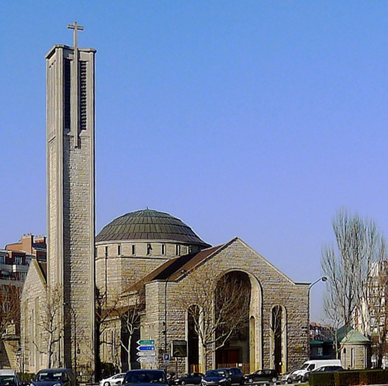 The church of Sainte Jeanne de Chantal at the Porte de Saint-Cloud in the 16th arrondissement is a striking example of mid 20th-century architecture. With its dome and tower, it almost looks like a mosque with a minaret.