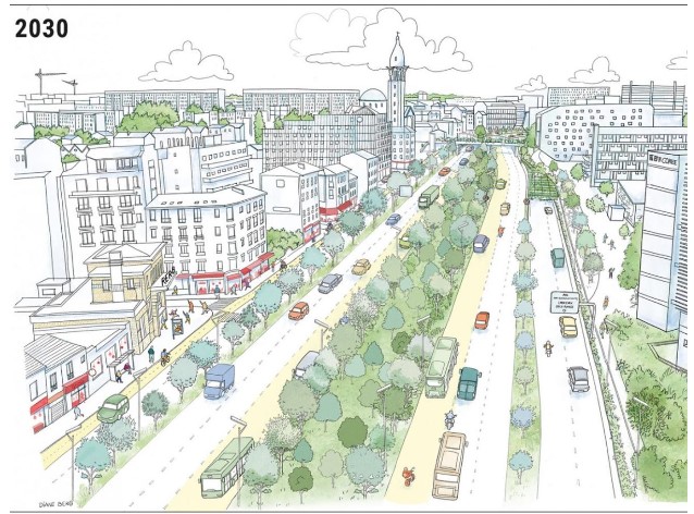 There is even a proposal to turn the Périphérique highway – that source of noise, pollution, and social alienation – into an urban boulevard, complete with trees and sidewalks, as shown in a conceptual rendering below. The French are not afraid to think big. I finished the book feeling heartened.