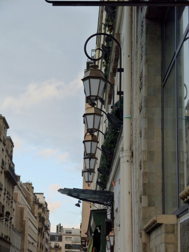 Another 21st century feature of the view was the green cross advertising a pharmacie – this establishment also faced onto the boulevard one block over, and the sign simply directed customers to the location of the entrance. These green crosses fascinate me. Somewhere, there is a factory churning them out for the French market, and the workers must spend their lives coming up with new patterns of green lights on a black background. It seems that no two signs have exactly the same patterns.